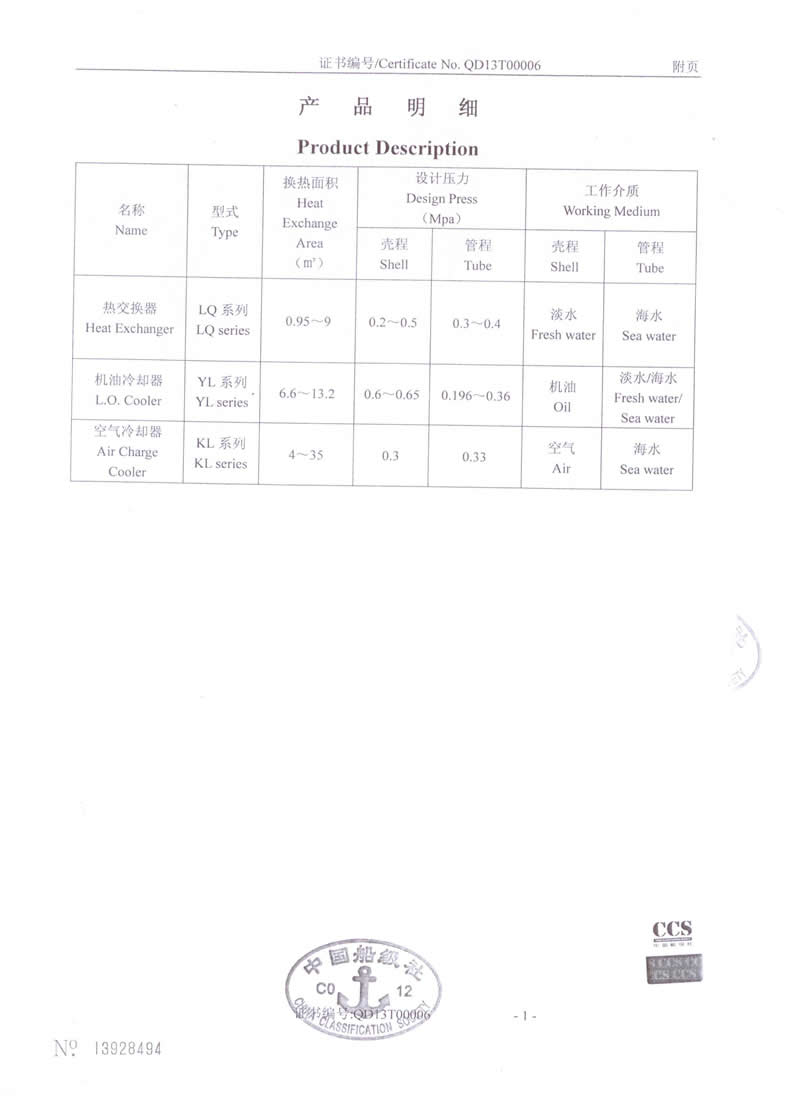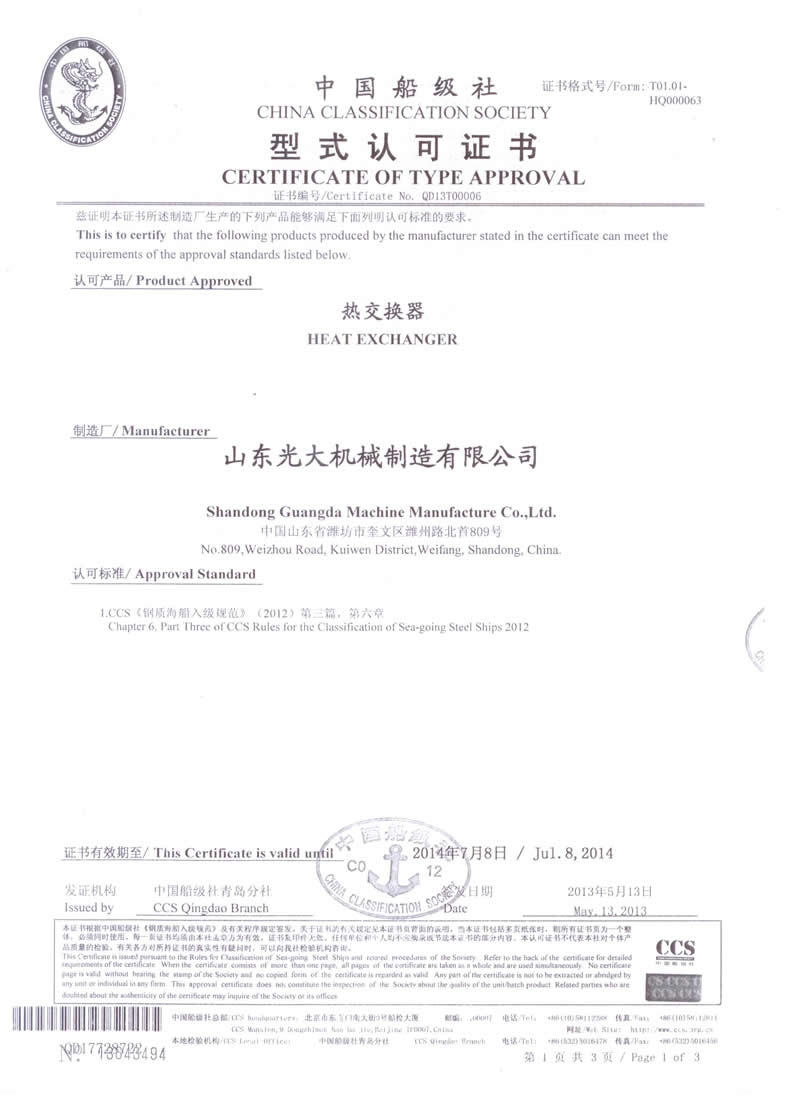 熱交換器-型式認(rèn)可證書